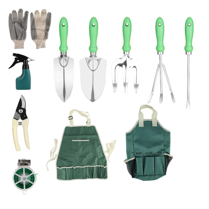 This gardening set including a trowel, scale trowel, rake, root shovel, triangle rake, pruner, sprayer, gloves, ties, apron, multi-compartment tote, suitable for digging, weeding, loosening, planting, pruning. If your kids love gardening gifts toolsets, surely, let you a happy parent-child experience.