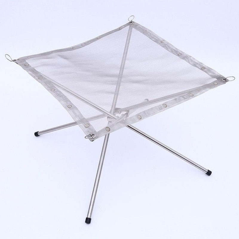 Portable and powerful load capacity: This fire pit features a rollable stainless steel net and folding legs. The crossing structure of the 4 stainless steel pipes has a fixed function to prevents the fire pit from tilting. Bearing capacity of 5kg.