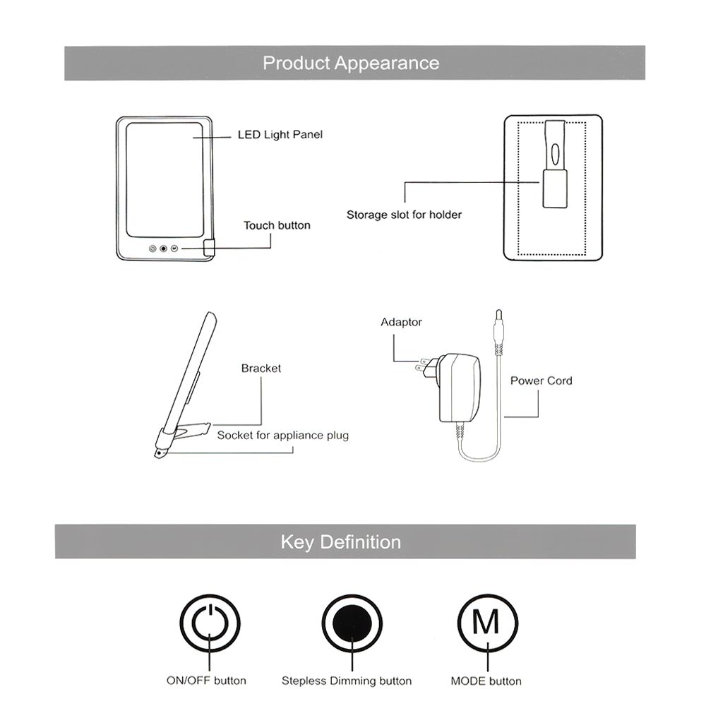 Mode: White (10000LUX), Warm White (6500LUX±10%), Warm Yellow (5500LUX)