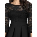 Highly recommended this dress. It features solid color with lace splice, round neck and three quarter sleeve, zipper fastening to reverse and ruffle hem design. Take it to your wardrobe.