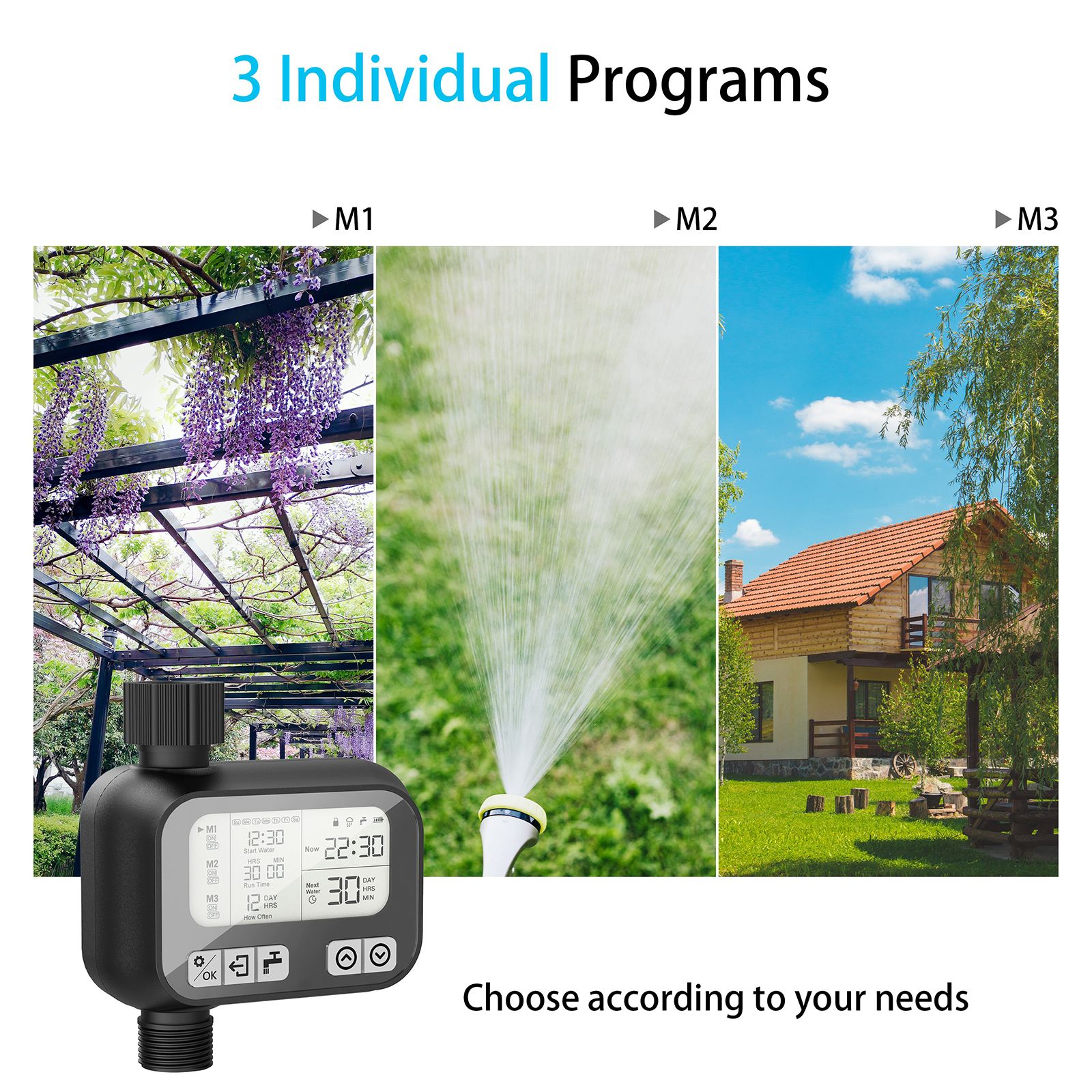 The irrigation timer controller is mainly to solve the problem of watering the lawn on time when there is no one on duty while avoiding the waste of water resources. It can be used for indoor succulents and potted plants, and can also be used for outdoor lawns, courtyards, greenhouses, and other scenes.