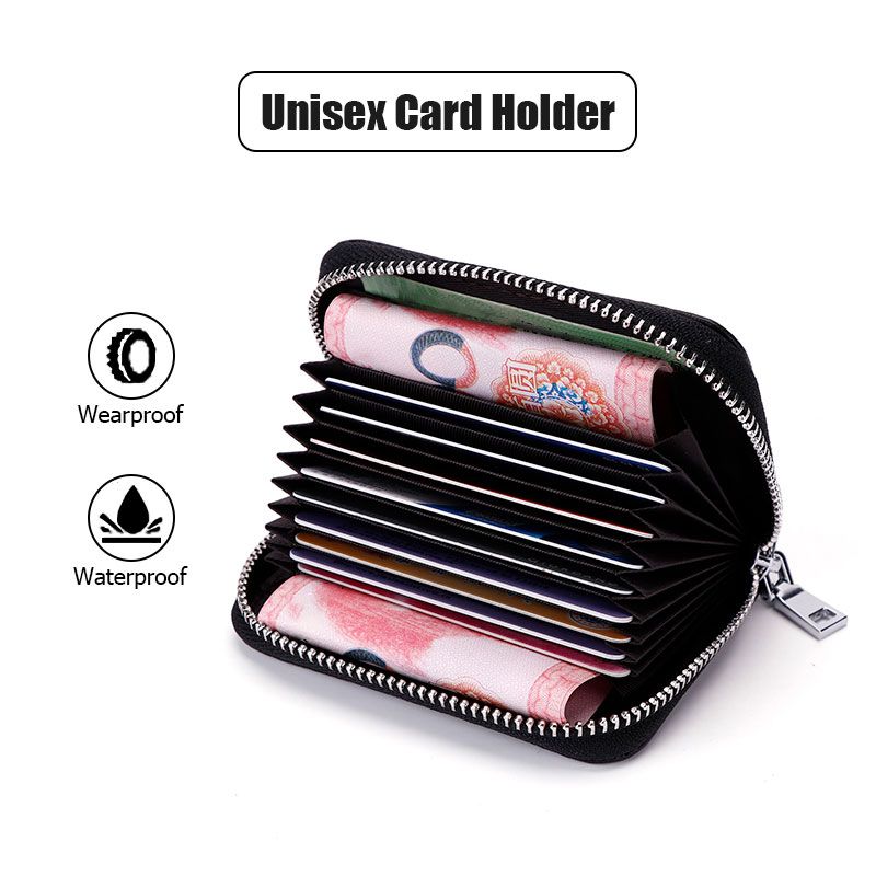 Solid color card holder with multiple card slots is very suitable for those who have lots of cards. With zipper closure, things in your wallet would be safe. Perfect both for men and women.